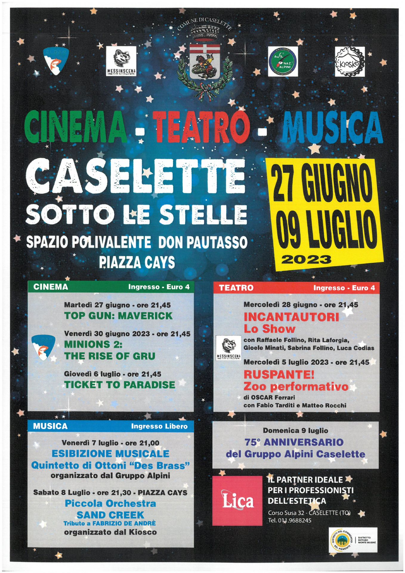 Dal 27 Giugno al 9 Luglio 2023 - Cinema, Teatro, Musica presso lo spazio polivalente Don Pautasso - Piazza Cays