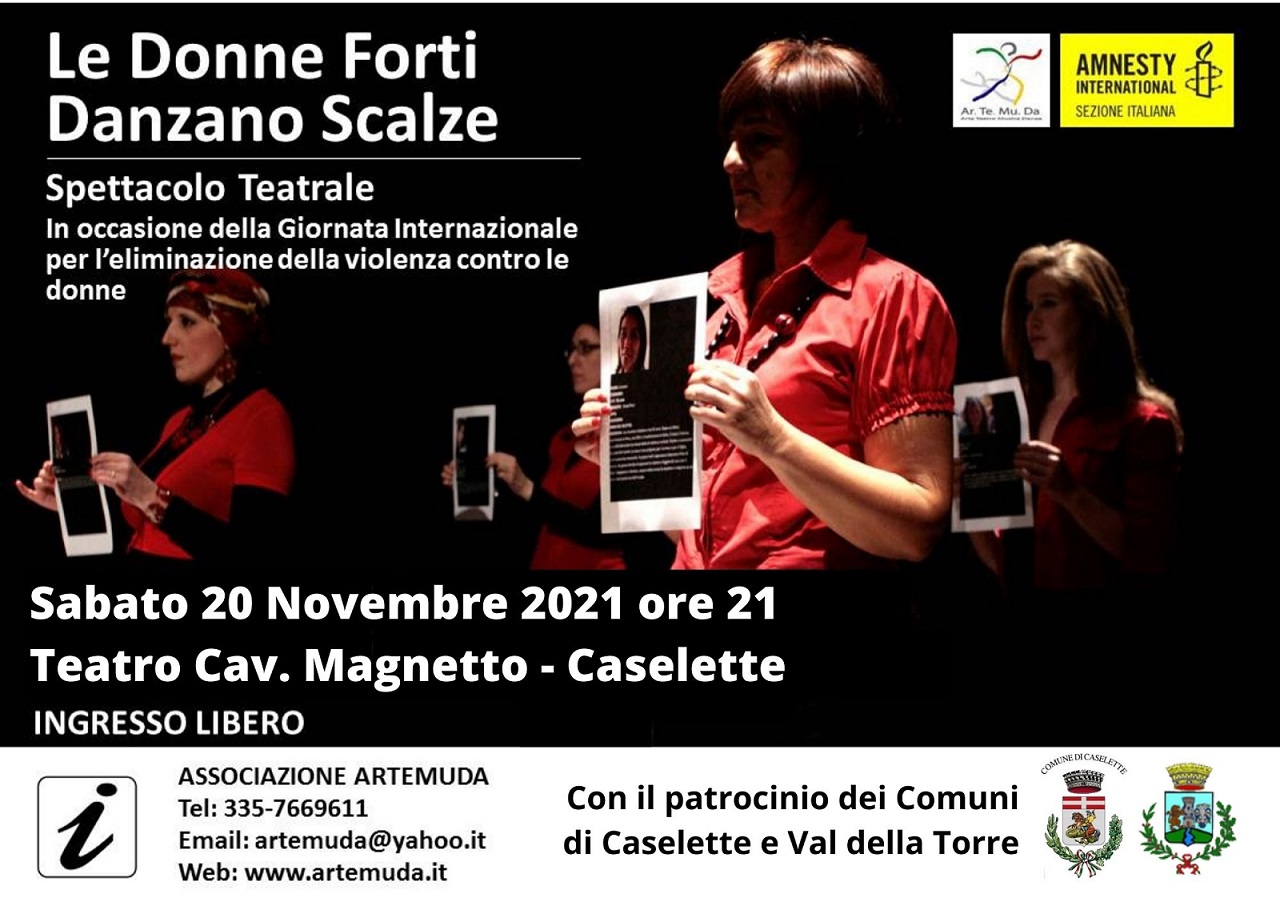 In occasione dellla Giornata Internazionale per l'eliminazione della violenza contro le donne i Comuni di Caselette e Val della Torre in collaborazione con l'Associazione Artemuda, presentano lo spettacolo teatrale "Le Donne Forti Danzano Scalze"