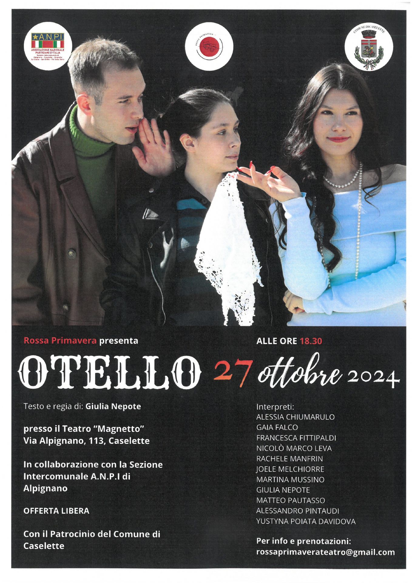 Domenica 27 ottobre 2024 alle ore 18.30 presso il Salone Polivalente "Cav. del Lavoro Mario Magnetto" si terrà lo spettacolo teatrale "Otello".