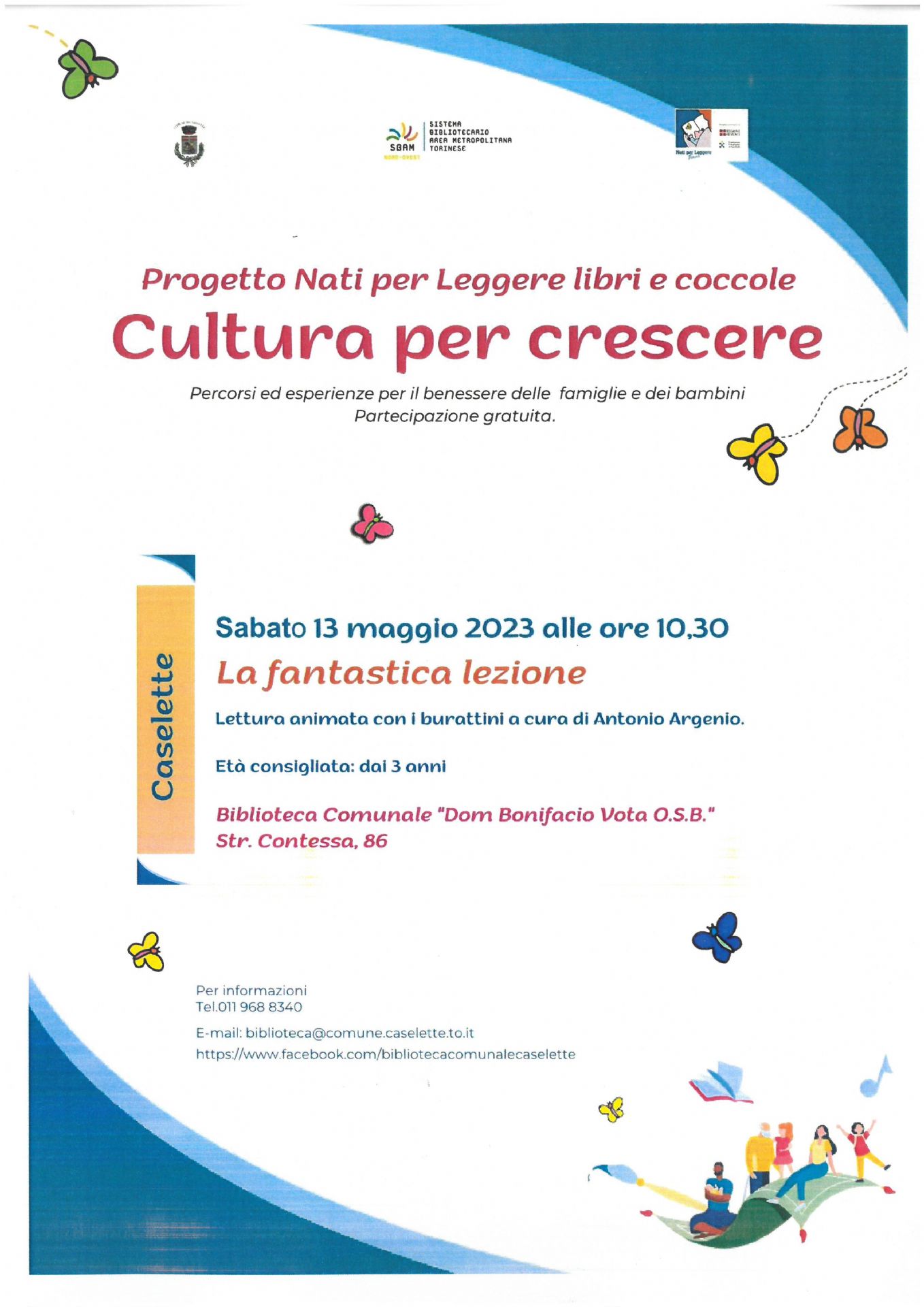SABATO 13 MAGGIO 2023 ALLE ORE 10.30 presso la Biblioteca Comunale - Strada Contessa n. 86 "La fantastica lezione" - lettura animata con i burattini a cura di Antonio Argenio.