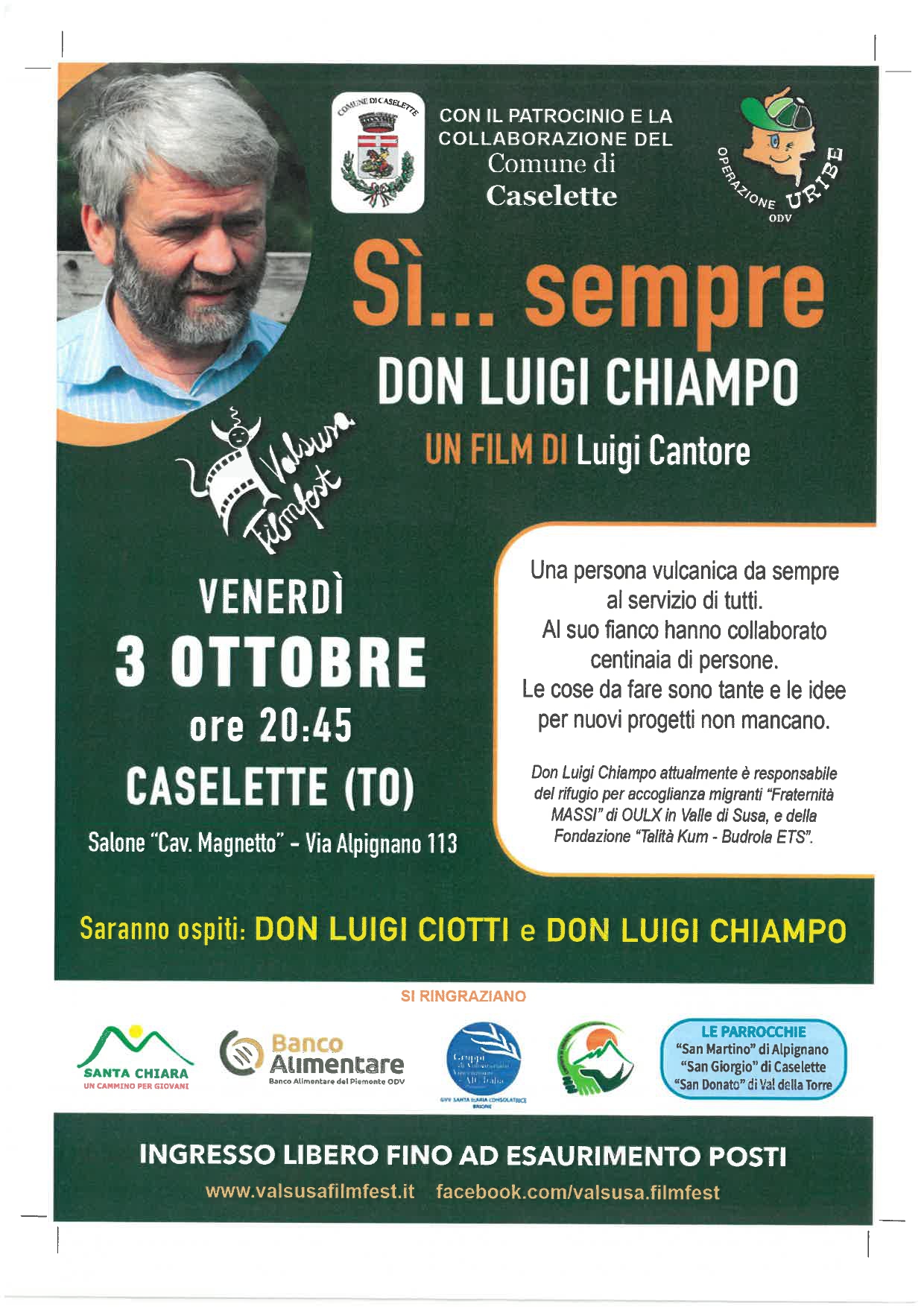 Venerdì 3 Ottobre alle ore 20.45 presso il Salone ''Cav. Magnetto in via Alpignano 113 si proietterà il film ''Sì... sempre Don Luigi Chiampo'' di Luigi Cantore