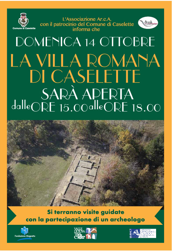 Domenica 14/10/2018 la Villa Romana di Caselette sarà aperta dalle ore 15,00 alle ore 18,00 con la partecipazione di un archeologo.