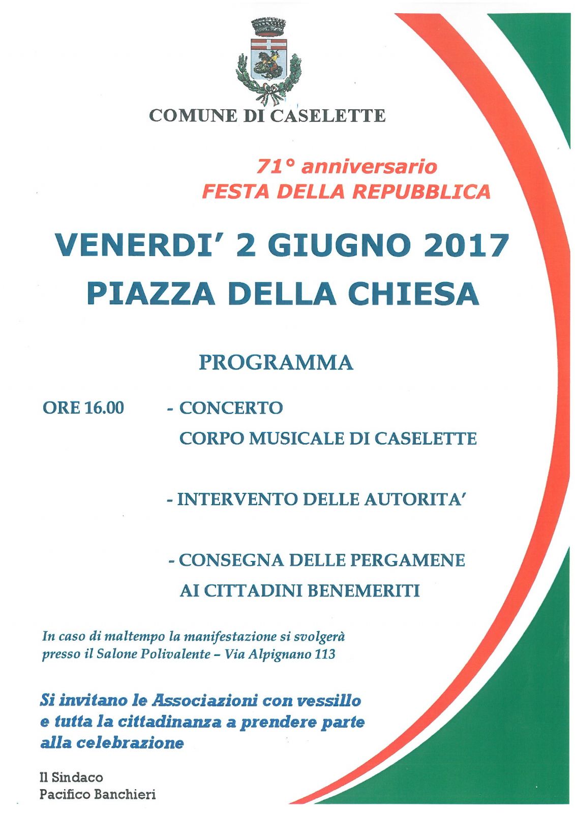 Si invitano le Associazioni con vessillo e tutta la Cittadinanza a prendere parte alla celebrazione.