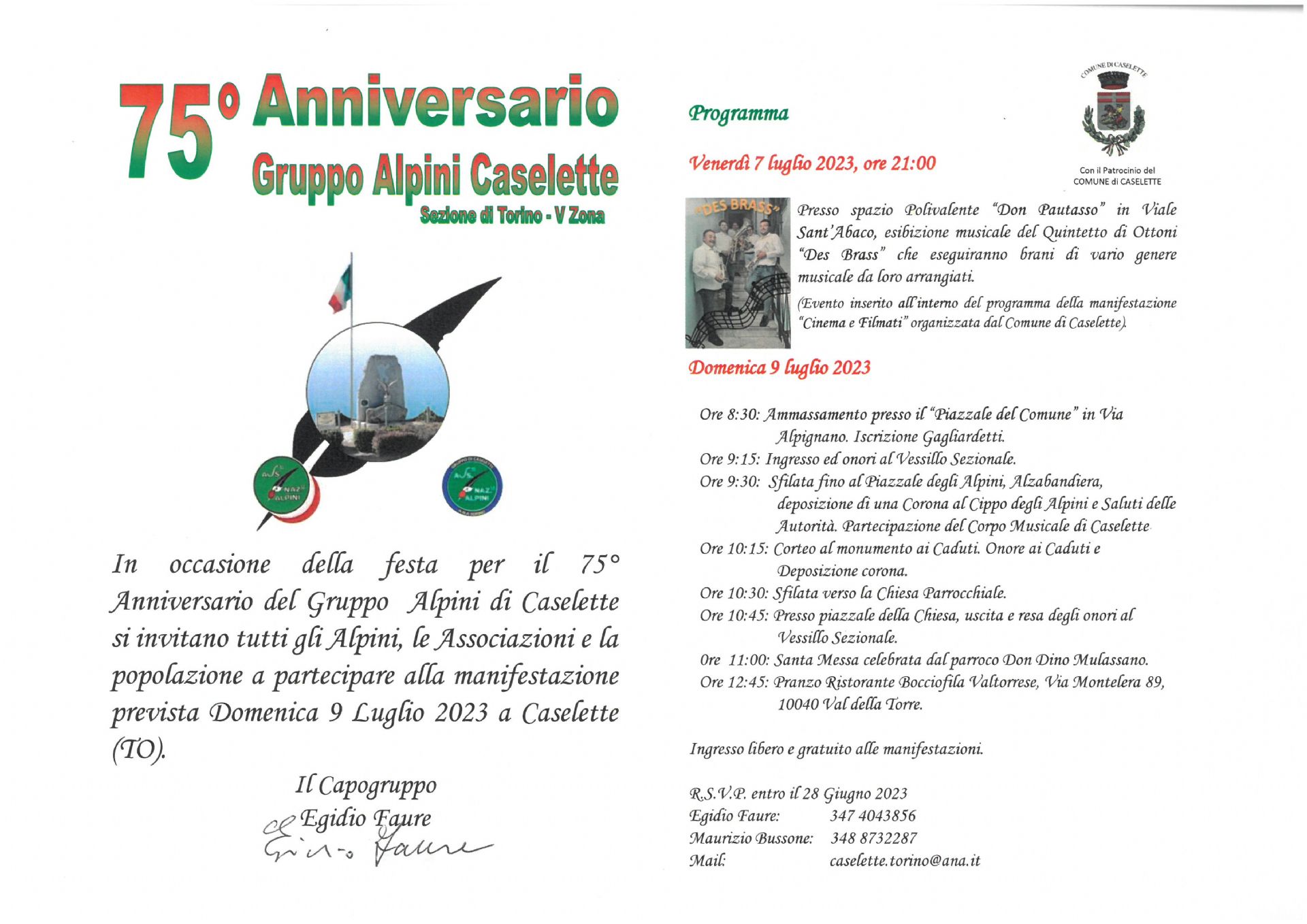 - 75° ANNIVERSARIO GRUPPO ALPINI CASELETTE[.pdf 80,9 Kb - 06/06/2023]