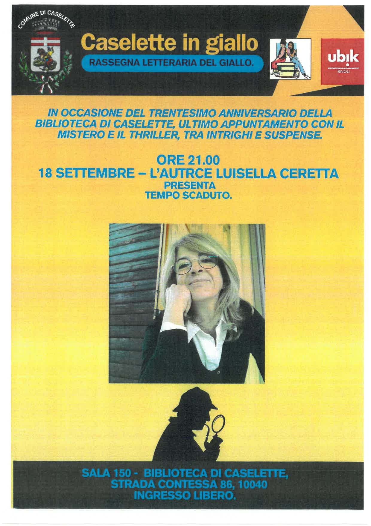 18 Settembre ore 21.00 - L'autrice Luisella Ceretta presenta ''tempo scaduto''.