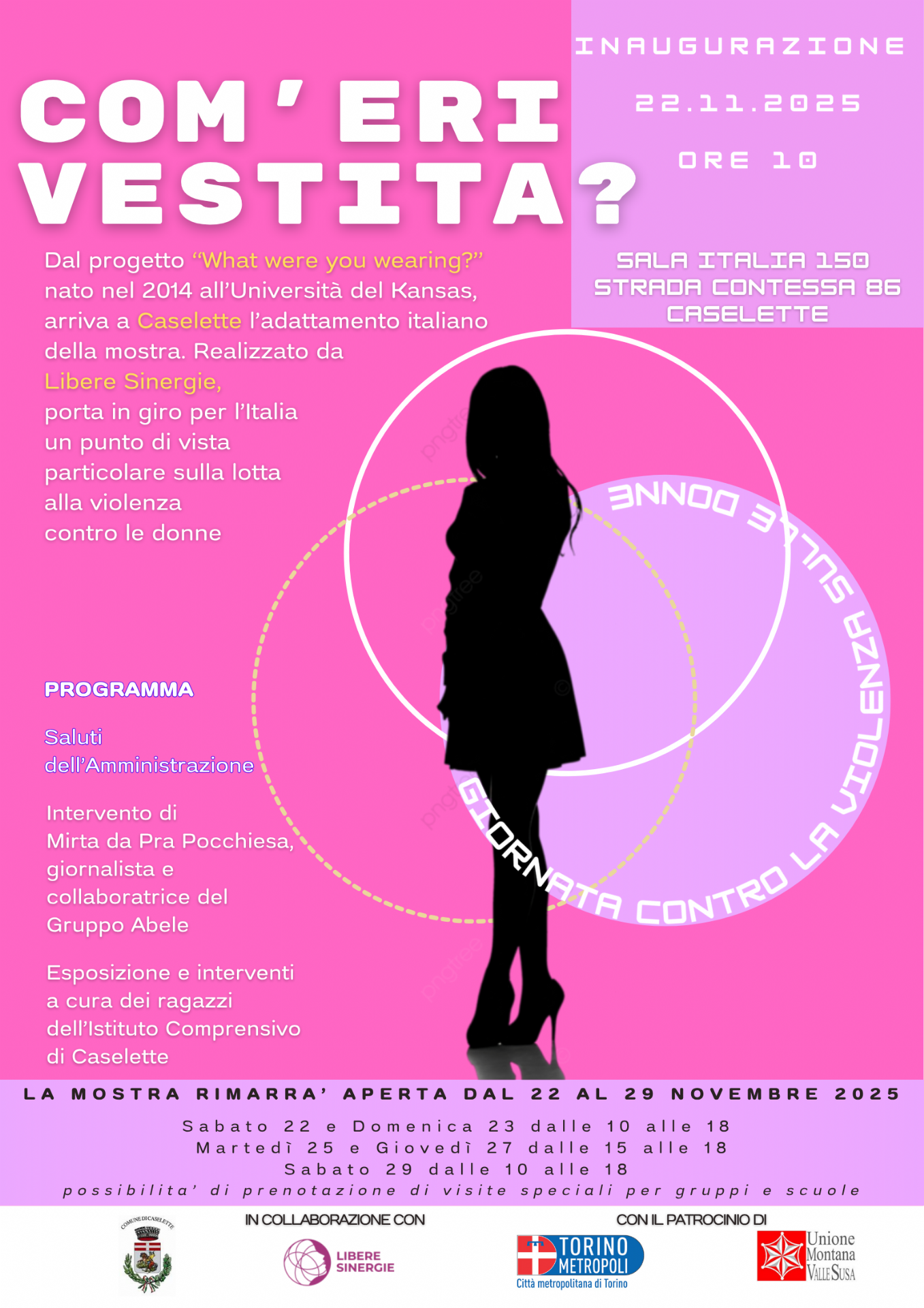 Dal progetto "What were you wearing?" nato nel 2014 all'Università del Kansas, arriva a Caselette l'adattamento in italiano della mostra. Realizzato da Libere Sinergie, porta in giro per l'Italia un punto di vista particolare sulla lotta alla violenza contro le donne.