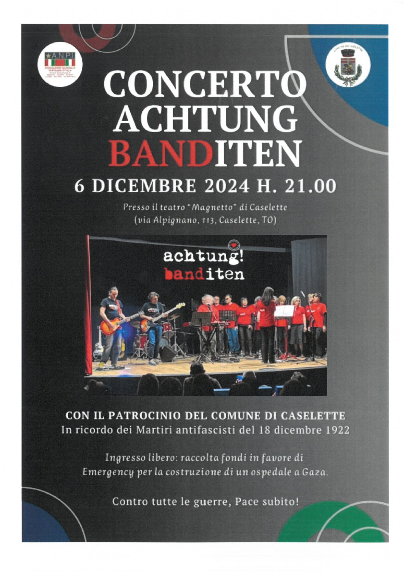 Venerdì 6 Dicembre 2024 alle ore 21.00 presso il Salone Polivalente "Cav. del Lavoro Mario Magnetto" si terrà il concerto Achtung Banditen