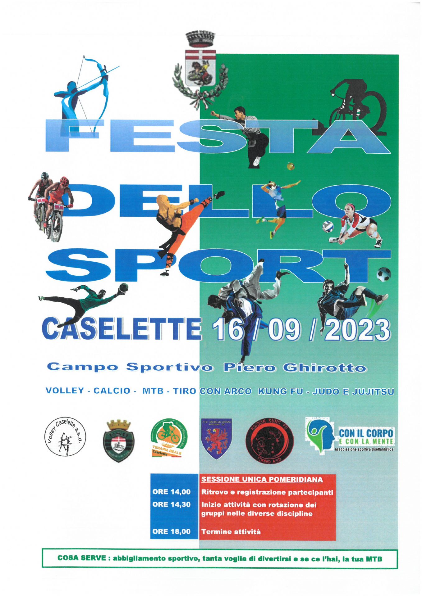 SABATO 16 SETTEMBRE 2023 presso il Campo Sportivo di Caselette si terrà la Festa dello Sport