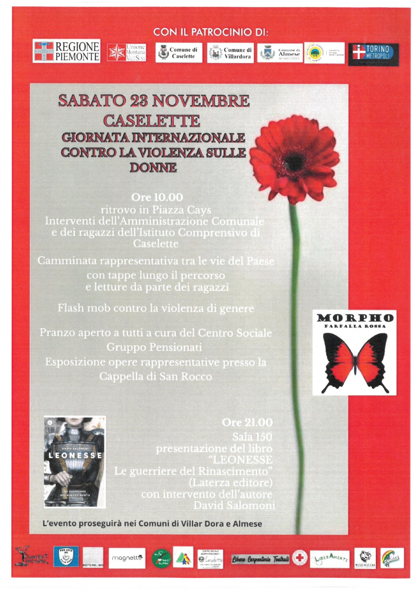 SABATO 23 NOVEMBRE 2024 si terranno delle iniziative in occasione della Giornata internazionale contro la violenza sulle donne.