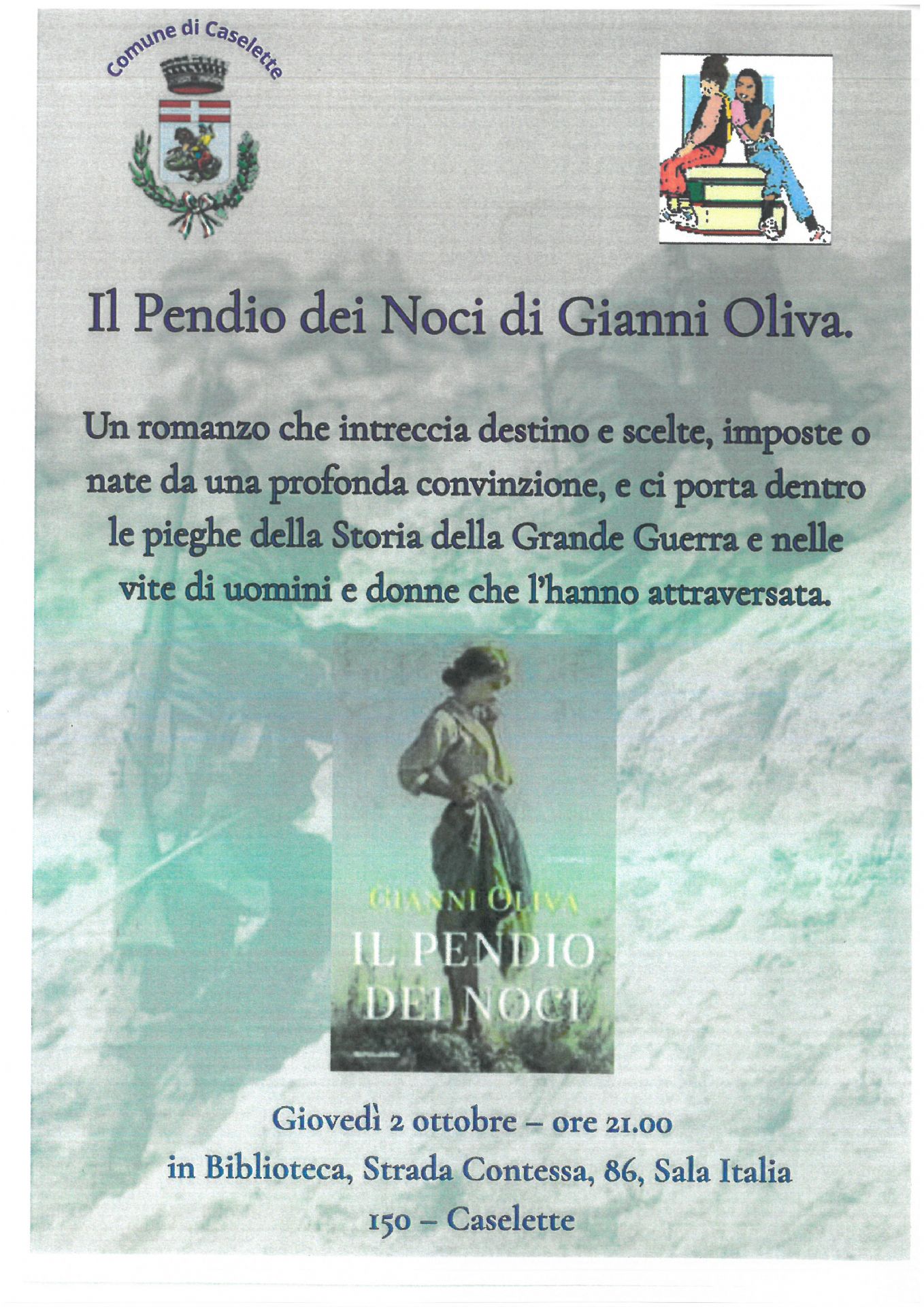 Giovedì 2 Ottobre 2025 ore 21.00 c/o la Sala Italia 150 - Strada Contessa n. 86 presentazione del libro di Gianni Oliva "Il pendio dei noci".