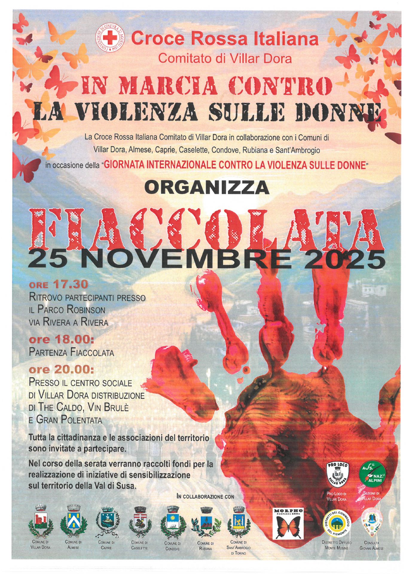 La Croce Rossa Italiana Comitato di Villar Dora in collaborazione con i Comuni di Villar Dora, Almese, Caprie, Caselette, Condove, Rubiana e Sant'Ambrogio in occasione della "Giornata Internazionale Contro la Violenza sulle Donne" organizza Fiaccolata 25 Novembre 2025