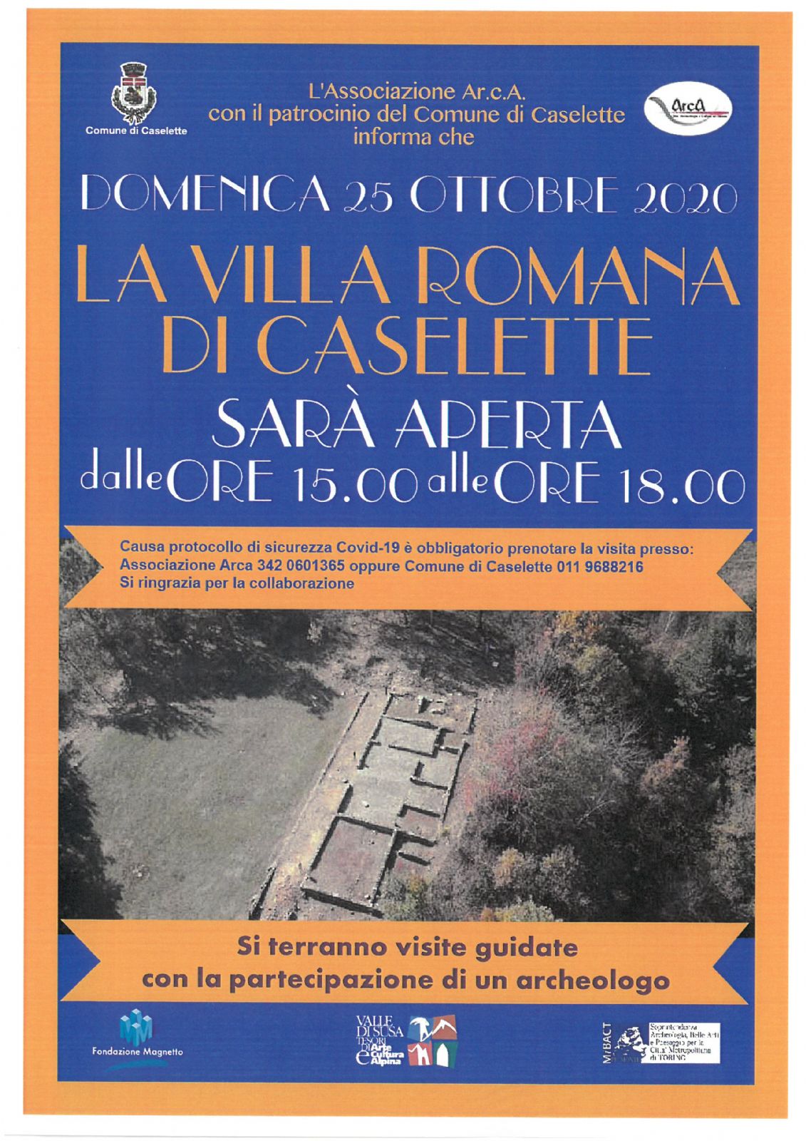 Domenica 25 Ottobre ultimo appuntamento del 2020, con le visite guidate alla Villa Romana di Caselette. L'edificio costruito alla fine del I secolo a.C., e gli inizi del I secolo d.C. è collocato sulle pendici orientali del monte Musinè a 400 m s.l.m. E' possibile visitare il sito dalle ore 15.00 alle 18.00 con il supporto di un archeologo, e dei volontari dell'Associazione Ar.c.A. di Almese.