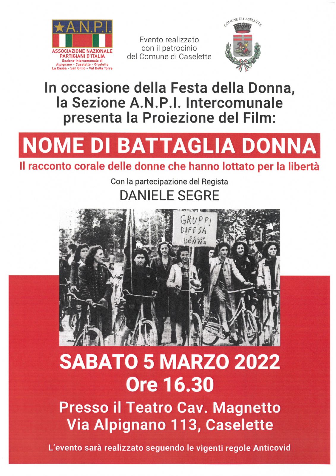 in occasione della Festa della Donna, la Sezione A.N.P.I. Intercomunale presenta la proiezione del film: "Nome di battaglia donna"
