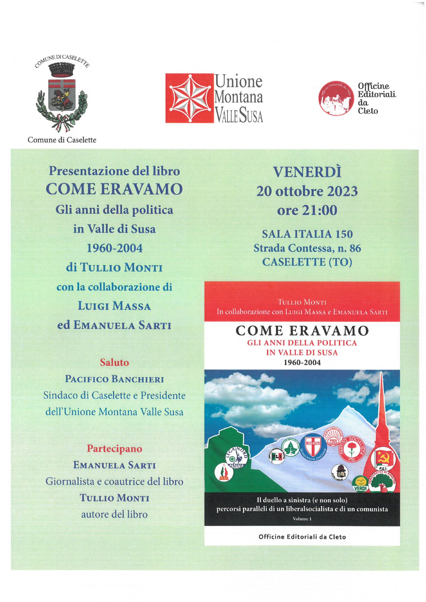 Venerdì 20 Ottobre 2023 alle ore 21.00 in Sala Italia 150 - Strada Contessa n. 86 - Caselette, presentazione del libro "Come eravamo"