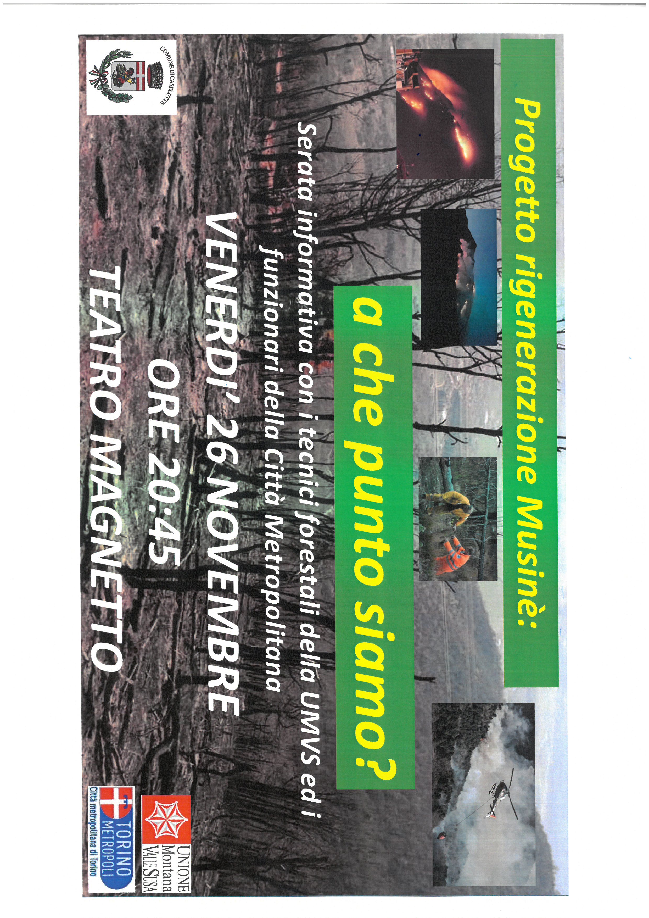 Serata informativa con i tecnici forestali della UMVS ed i funzionari della Città Metropolitana c/o il Teatro Magnetto (Venerdì 26 Novembre - ore 20:45)