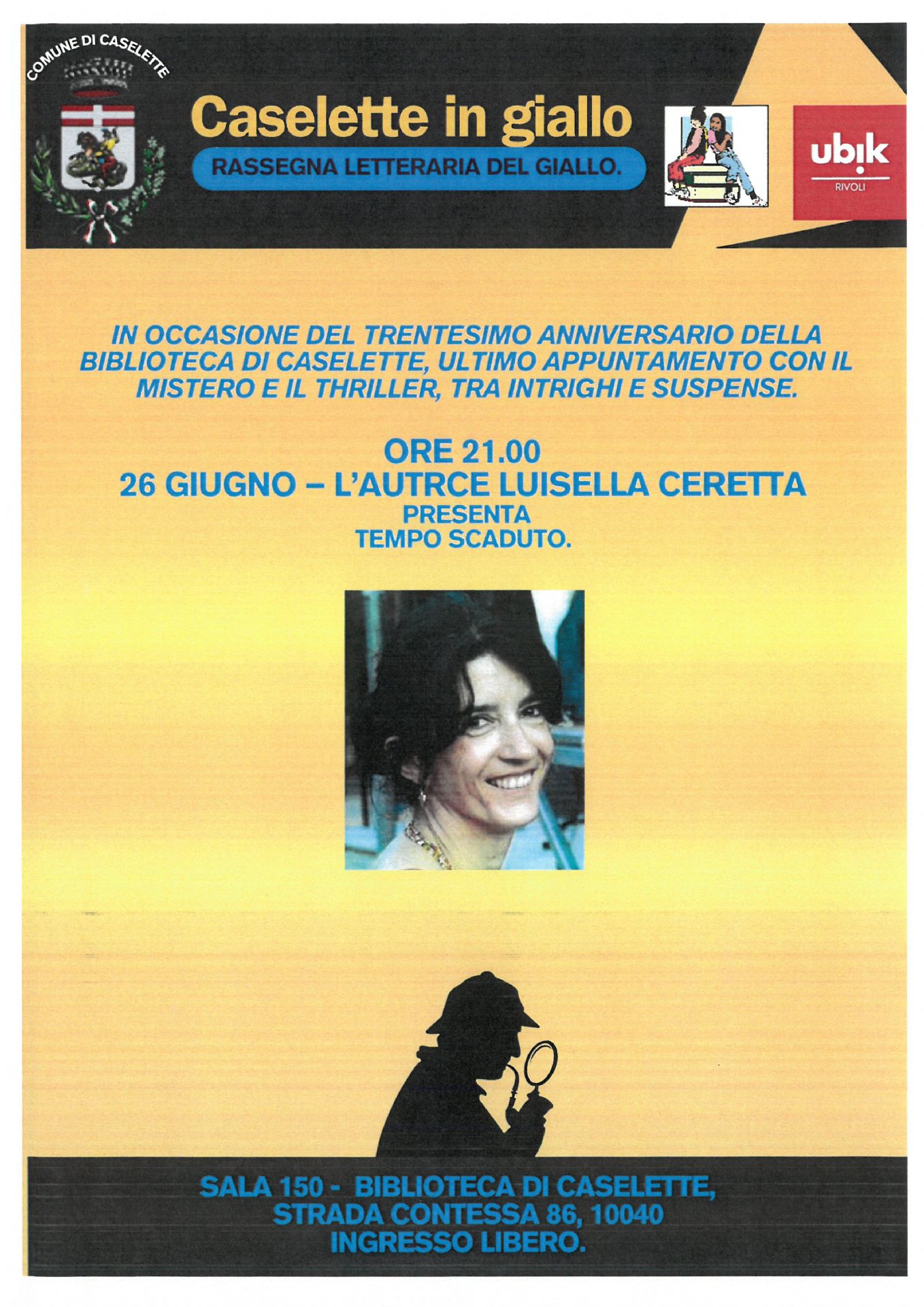 In occasione del trentesimo anniversario della biblioteca di caselette, tre appuntamenti con il mistero e il thriller, tra intrighi e suspense. dialoghi con gli scrittori sui loro romanzi e segreti del genere!