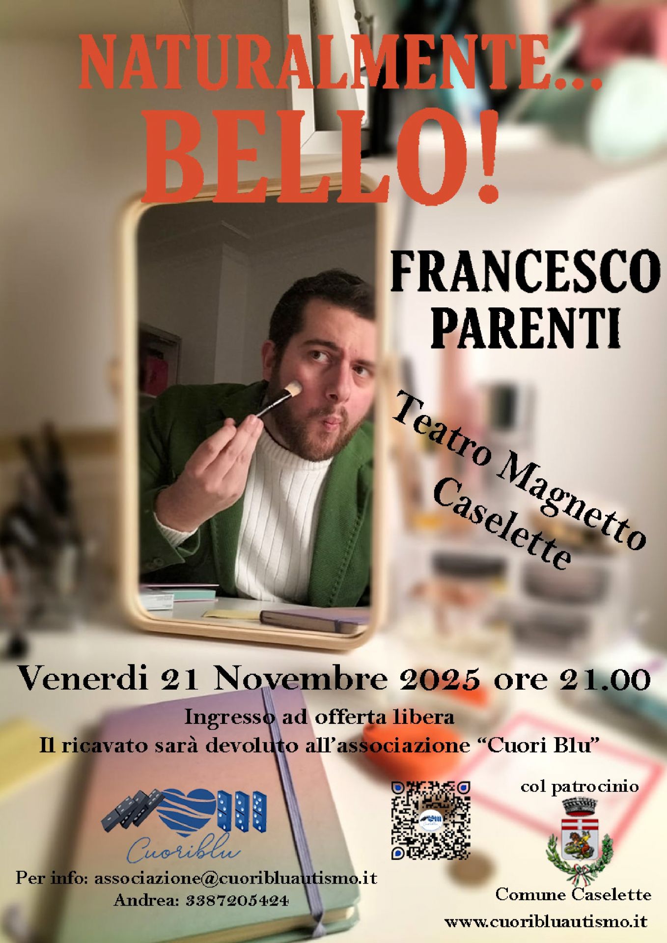 il giorno Venerdì 21 Novembre 2025 alle ore 21.00 si terrà lo spettacolo teatrale di Francesco Parenti, ''Naturalmente...BELLO!''