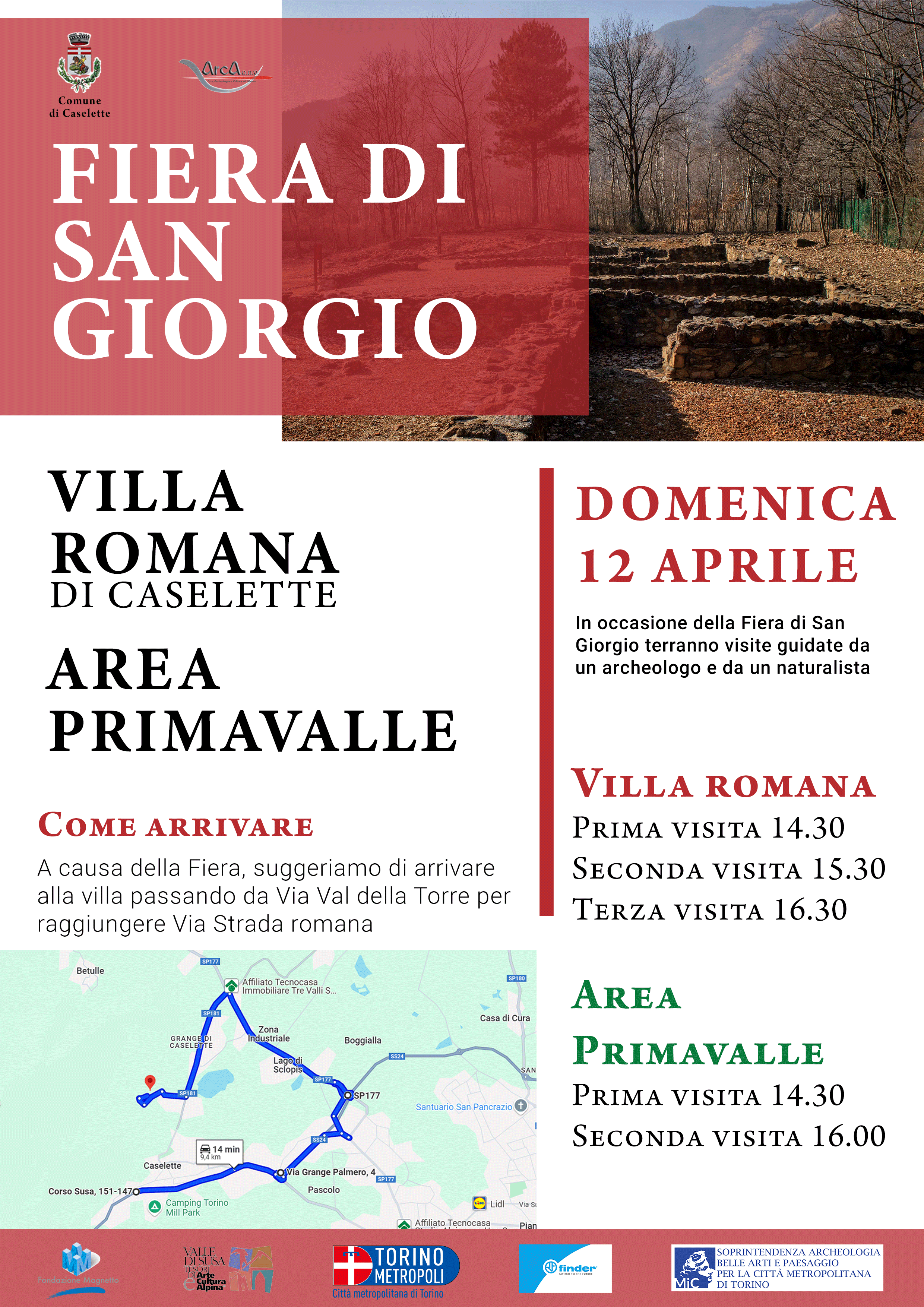 Domenica 12 Aprile 2026 in occasione della Fiera di San Giorgio si terranno visite guidate da un archeologo e da un naturalista alla Villa Romana e all'Area Primavalle di Caselette
