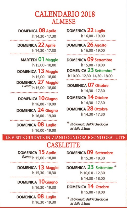 Calendario 2018 delle visite guidate alle Ville Romane di Almese e Caselette.