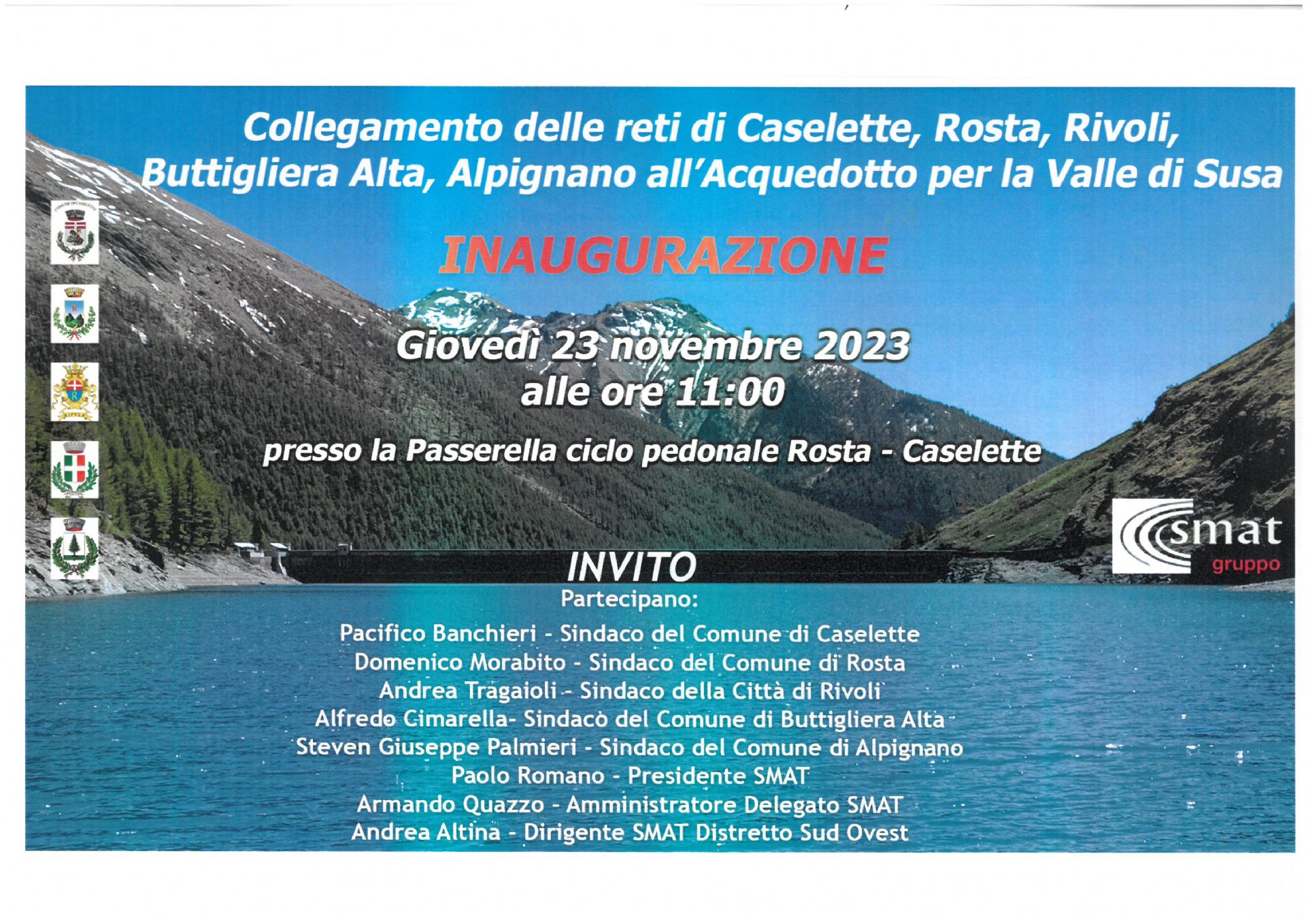 Collegamento delle reti di Caselette, Rosta, Rivoli, Buttigliera Alta, Alpignano all'Acquedotto per la Valle di Susa - Giovedì 23 Novembre 2023 alle ore 10.00 presso la passerella ciclo pedonale Rosta - Caselette