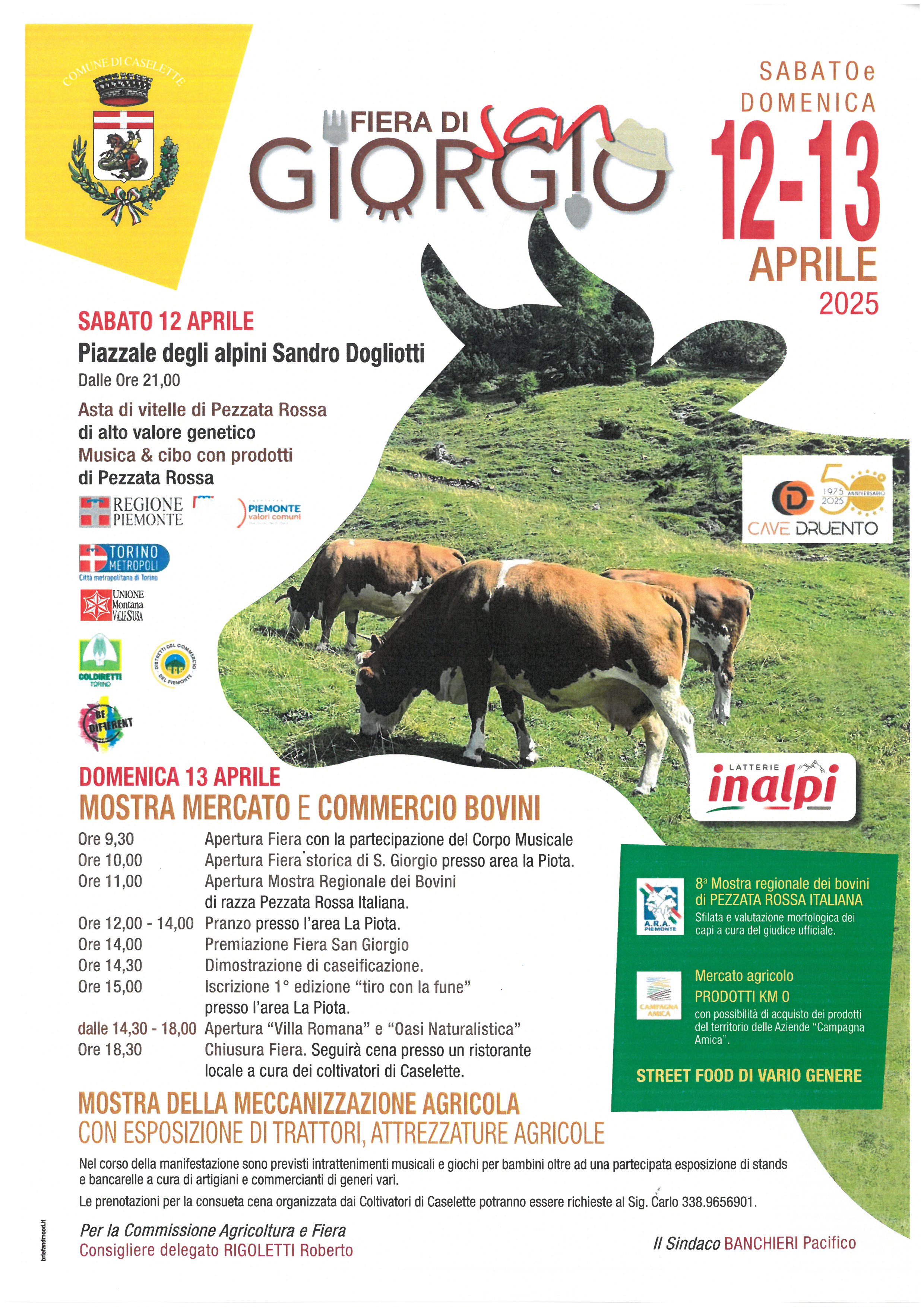 Si comunica ai cittadini che il 12 e il 13 aprile si terrà la Fiera di San Giorgio e la mostra regionale di pezzata rossa italiana.